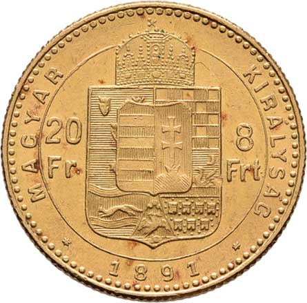 | 67. | 8 Zlatník 1891 KB - se znakem Rijeky, 6.440g,