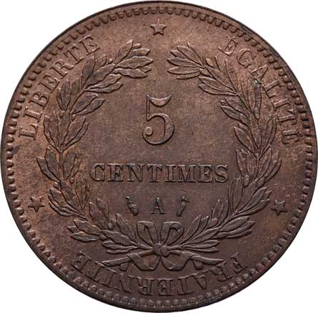| 2168. | 5 Centimes 1888 A, Paříž, KM.821.1 (bronz), 4.943g,