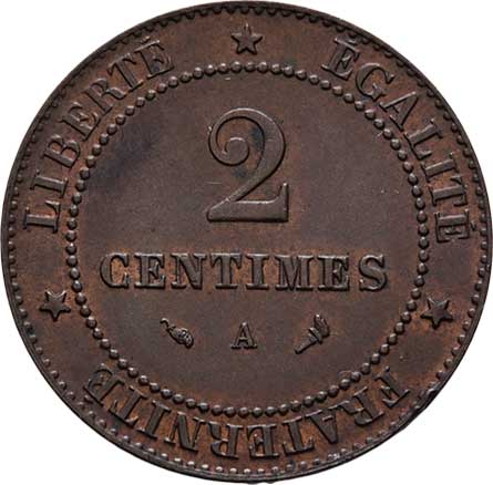 | 2170. | 2 Centimes 1897 A, Paříž, KM.827.1 (bronz), 2.027g,