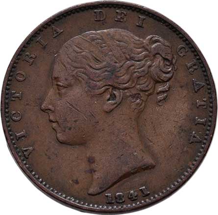 | 2421. | Farthing 1841, Londýn, SCBC.3950, KM.725 (měď),
