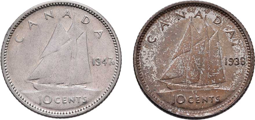 | 2486. | 10 Cent 1938, 1947, KM.34 (Ag800), 2.333g, 2.280g,