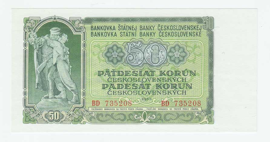 | 3307. | 50 Koruna 1953, sér. BD (Moskva), BHK.91aA, He.103a1,