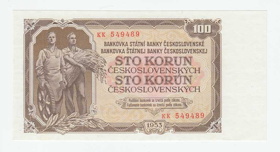 | 3312. | 100 Koruna 1953, sér. KK (Praha), BHK.92bB, He.104b,