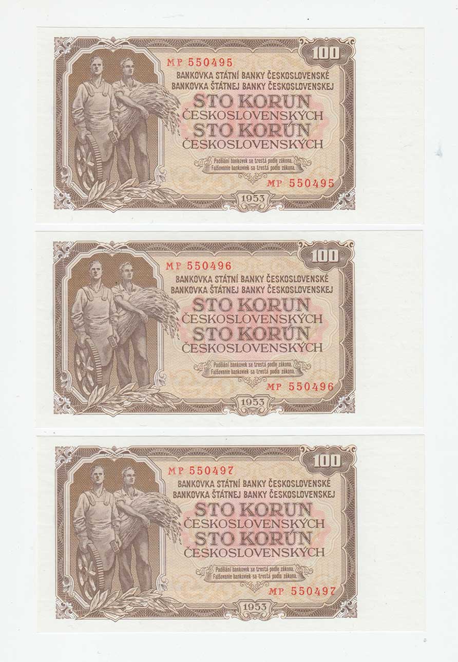 | 3313. | 100 Koruna 1953, sér. MP (Praha), BHK.92bB, He.104b,