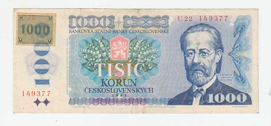 | 3383. | 1000 Koruna 1985 - s lepeným kolkem, série U22,