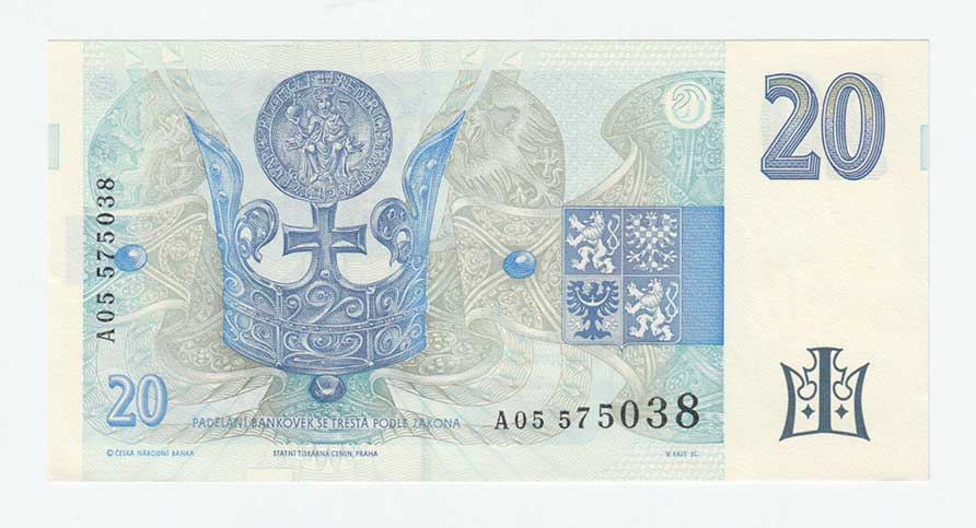 | 3391. | 20 Koruna 1994 - proužek vpravo, sér. A05, BHK.CZ10a,