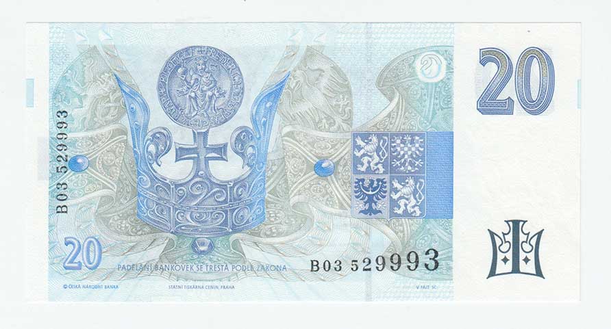 | 3397. | 20 Koruna 1994 - proužek vlevo, série B31, BHK.CZ10b,