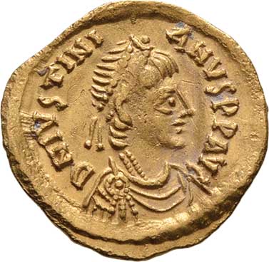 | 10. | Tremissis, "D.N.IVSTINIANVS.P.P.AVG.", hlava zprava /