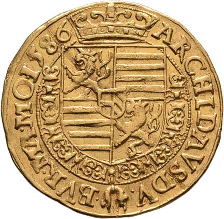| 15. | Dukát 1586, Praha-Ercker, J.64b-1, MKČ.295, 3.471g,