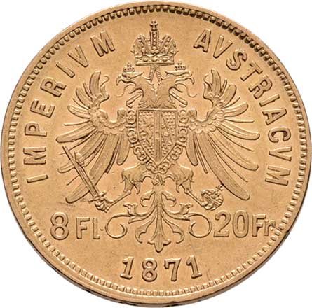 | 59. | 8 Zlatník 1871 (pouze 34.000 ks), 6.431g, nep.hr.,