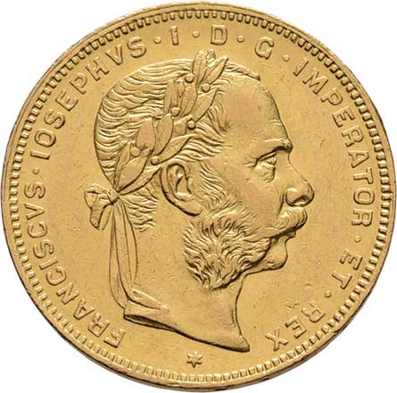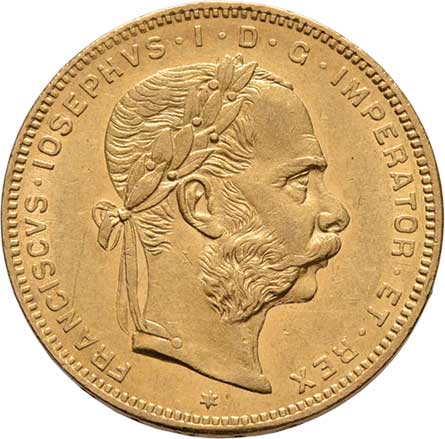 | 61. | 8 Zlatník 1874 (pouze 42.000 ks), 6.425g, nep.hr.,