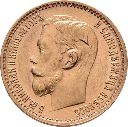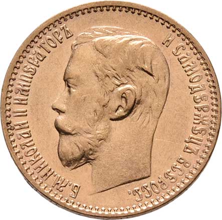 | 211. | 5 Rubl 1900 FZ, Petrohrad, Y.62 (Au900), 4.288g,