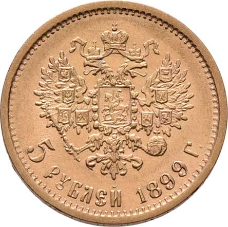| 210. | 5 Rubl 1899 FZ, Petrohrad, Y.62 (Au900), 4.289g,
