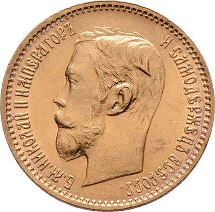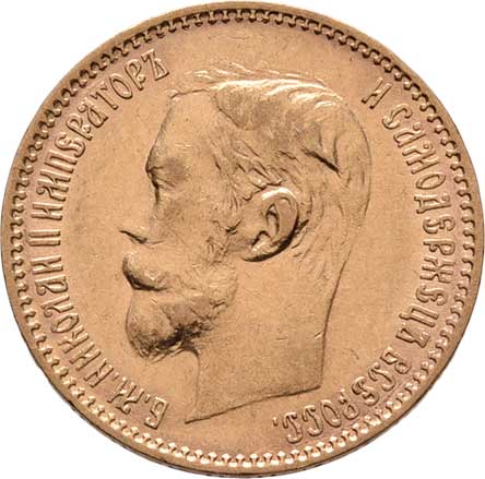 | 212. | 5 Rubl 1901 FZ, Petrohrad, Y.62 (Au900), 4.275g,