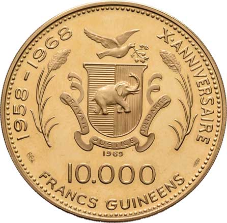 | 281. | 10.000 Frank (1970) - 10.výročí nezávislosti, KM.11