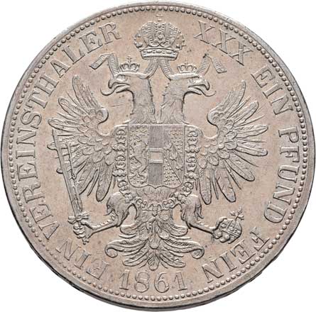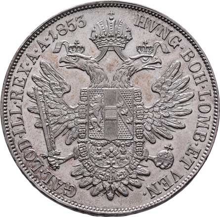 | 761. | Tolar 1855 A - hlava zprava, 25.954g, nep.hr.,