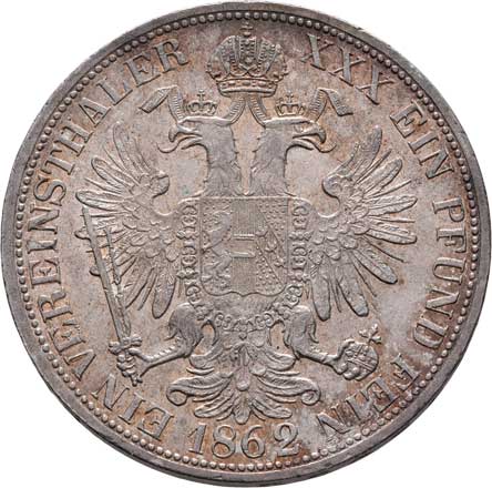 | 774. | Tolar spolkový 1862 V, 18.461g, nep.hr., nep.rysky,