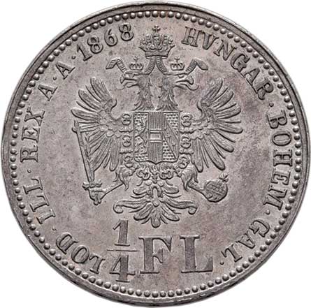 | 791. | 1/4 Zlatník 1868 A, 5.318g, dr.hr., nep.rysky,