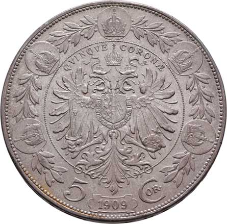 | 799. | 5 Koruna 1909 - Schwartz, 23.994g, nep.hr., dr.rysky,