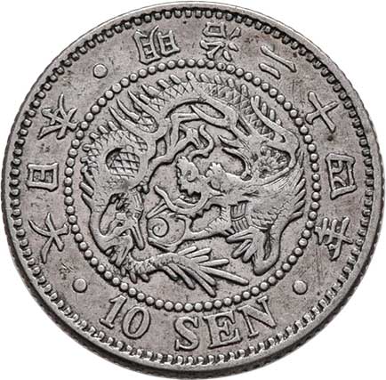| 2583. | 10 Sen, rok 10 (= 1877), Y.23 (Ag800), 2.685g,