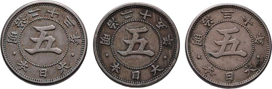 | 2587. | 5 Sen, rok 23 (= 1890), rok 25 (= 1892), rok 30