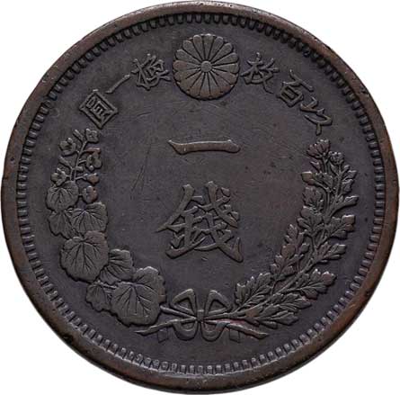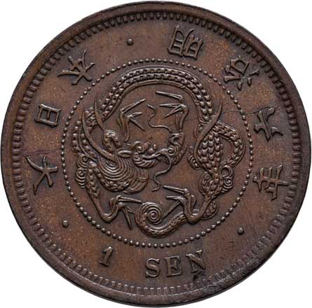 | 2591. | 1 Sen, rok 6 (= 1873), Y.17.1 (bronz), 6.982g,