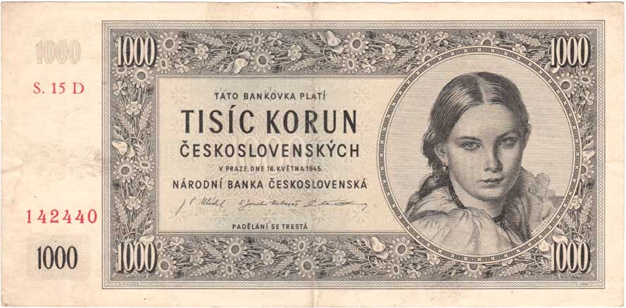 | 3214. | 1000 Koruna 1945, série 11B, 13B, 19B, 27B, BHK.78b,