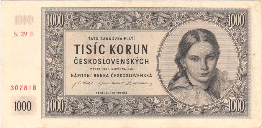 | 3223. | 1000 Koruna 1945, série 29E, BHK.78d, He.84b,
