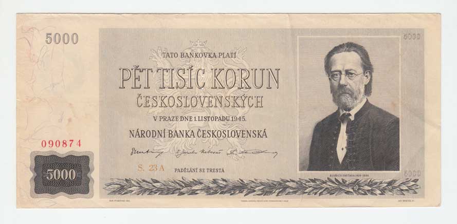 | 3225. | 5000 Koruna 1945, série 23A, BHK.79, He.85a.s1,