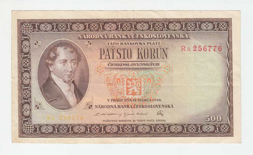 | 3232. | 500 Koruna 1946, série J, BHK.80a, He.87a.s1,
