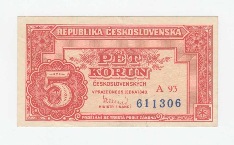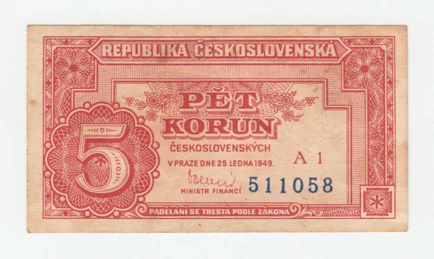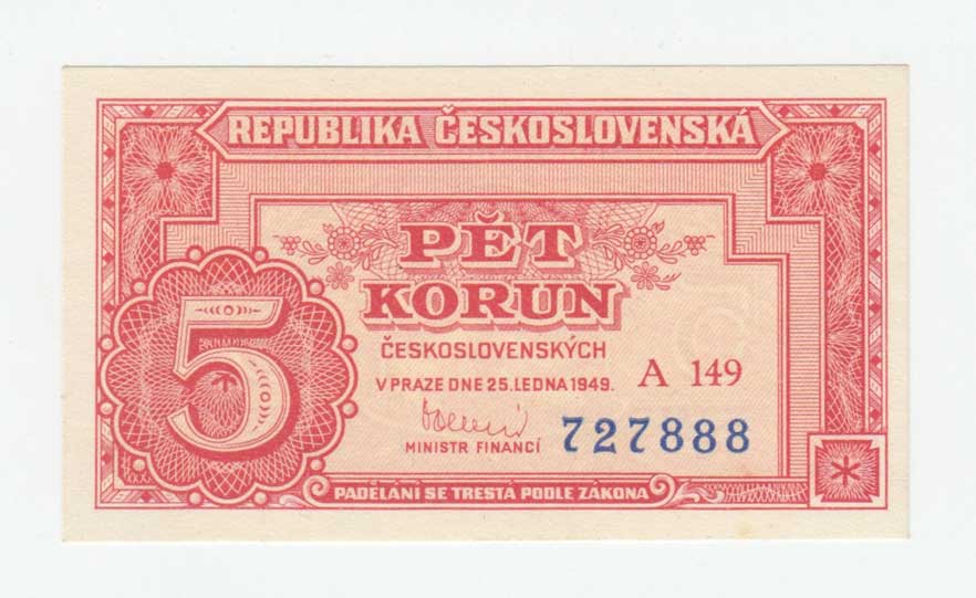 | 3240. | 5 Koruna 1949, série A103, BHK.82c, He.89a3,