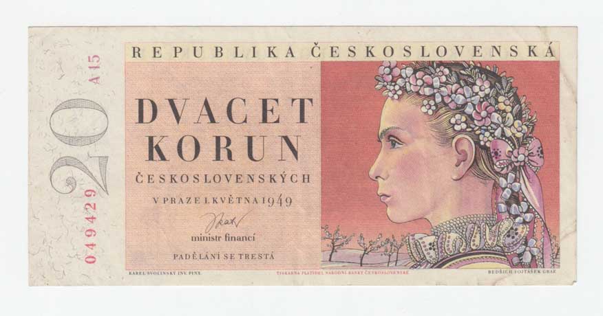 | 3244. | 20 Koruna 1949, série A13, BHK.83a, He.90a,