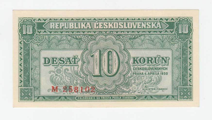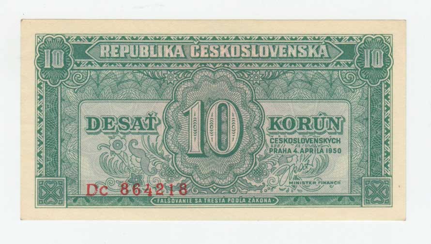 | 3256. | 10 Koruna 1950, série Za, BHK.84b, He.92b, "neperf." | 1+ | 40,- | 40,- |
