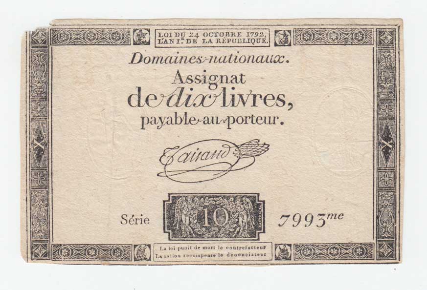 | 3427. | 10 Livres 24.10.1792, Pick.A66 - vodoznak "RP-FR /