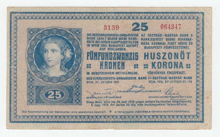 | 3465. | 25 Koruna 1918, Pick.12, Ri.448 - série 3139 - platná