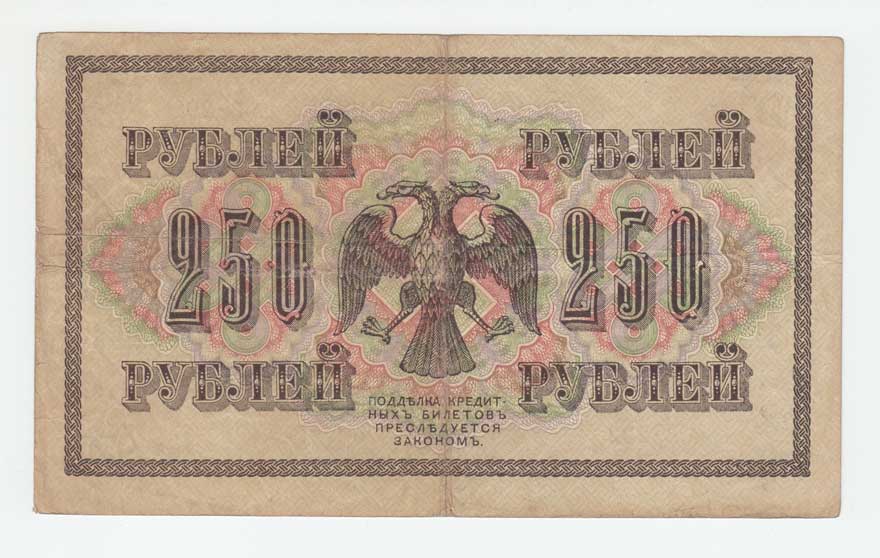 | 3701. | 250 Rubl 1917, Pick.36 - Šipov / Ja.Metz, v reversu
