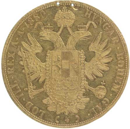 | 22. | 4 Dukát 1880 b.zn. dvě dírky po korunce | tém.0/0 | 20000,- | 32000,- |