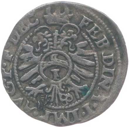 | 388. | Malý groš 1584, Jáchymov-Hoffmann, HN.7a (opis 7c), jako J.4c