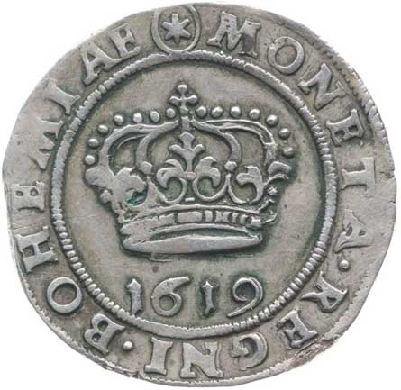 | 399. | 24 Krejcar 1619, Praha-Hübmer, J.2a, MKČ.568 | -1/1- | 2000,- | 5000,- |