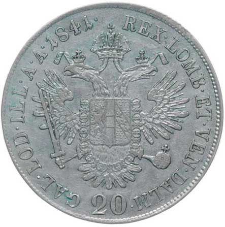 | 825. | 20 Krejcar 1841 A dr.just. v av. | 1/1 | 240,- | 240,- |