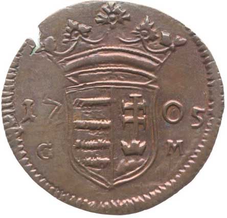 | 883. | XX Poltura 1705 P.-H., bez značky mincovny, Husz.1529, Her.17 | 1/1- | 1300,- | 1900,- |