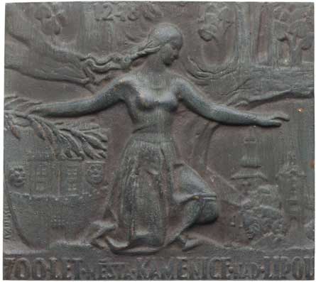 Část města s kostelem, opis, Sign., Bronz 60 mm jednostr. Vysoké Tatry - pod Tatrami tři znaky, opis Sign.SG, Bronz 60 mm |
