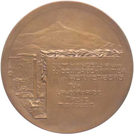 Portrét čelně mírně zleva, opis / 5řádk.nápis ve věnci, Sign., Sn 41 mm dr.st. kor. v rev. |