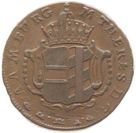 611. Cu 1/2 Krejcar 1772 G, Günzburg, N.147, Her.1634 - velký typ, Eyp.400