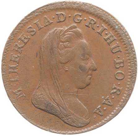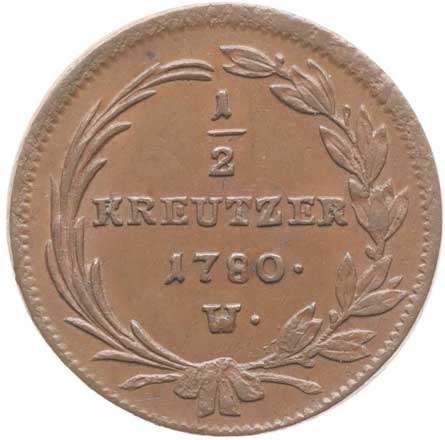 610. Cu 1/2 Krejcar 1780 W, Vídeň, Nový.61b, Novot.13, Her.1633 tém.0/0 4400,- --.-
