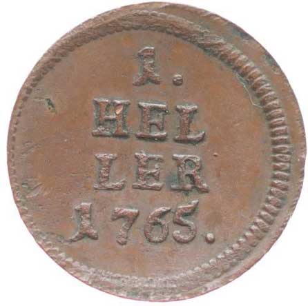 612. Cu Haléř 1765, Vídeň, Nový.48b, Nov.2 1/1 150,- --.-