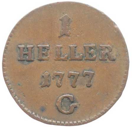 614. Cu Haléř 1777 G, Günzburg, Nový.149, Nov.23, Her.1667 -1/1 700,- --.-