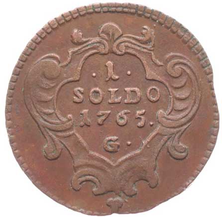 619. Cu Soldo 1765 G, Graz - pro Gorici, Nový.225, Her.1851 1/1 600,- --.-