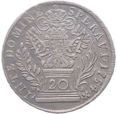 622. 20 Krejcar 1754 H-A, Tyroly-Hall, Nový.8 -1/1 600,- --.-