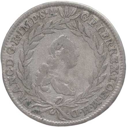 634. 20 Krejcar 1771 D/CvG-AK, Graz, P.9, Her.137 hr. v av. R! 2/1- 900,- --.-